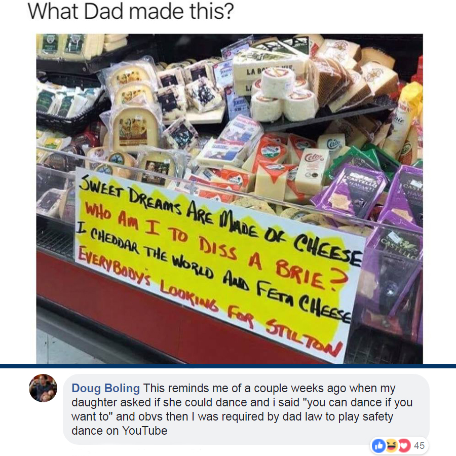 Every week we pan for comedy gold in the comments section of our Facebook posts. If your comment cracks us up (or warms our hearts) we’ll showcase it here!